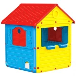 Dolu Kids City House, a fun playhouse for indoor and outdoor play, has a realistic design with windows, doors, and a roof, a compact durable plastic frame, and is super easy to assemble without tools.