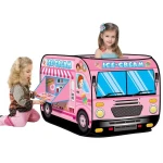 L112cm x W67cm x H72cm. Icecream Truck Kids Pop-up Play Tent - featuring a liftable back door, two round top openings for two kids, portable and lightweight design for easy setup that requires no tools for assembly, and durable polyester non-woven fabric to prevent rips and tears, perfect for indoor and outdoor use.